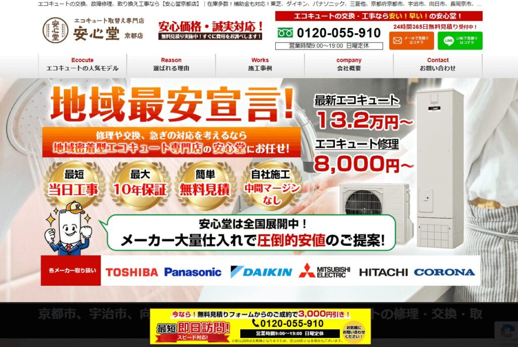 「今日中に交換したい」「まずは費用を知りたい」という方は、京都対応の専門業者に無料見積もりを依頼し、最適な交換プランを確認してみてください。