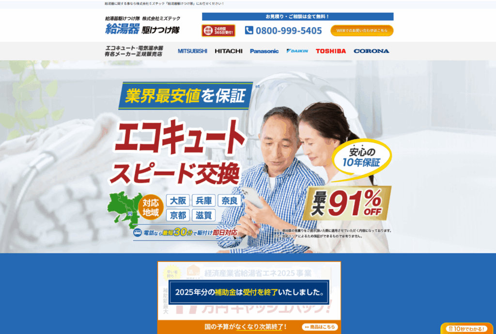 ・エコキュート本体価格が最大91%オフ