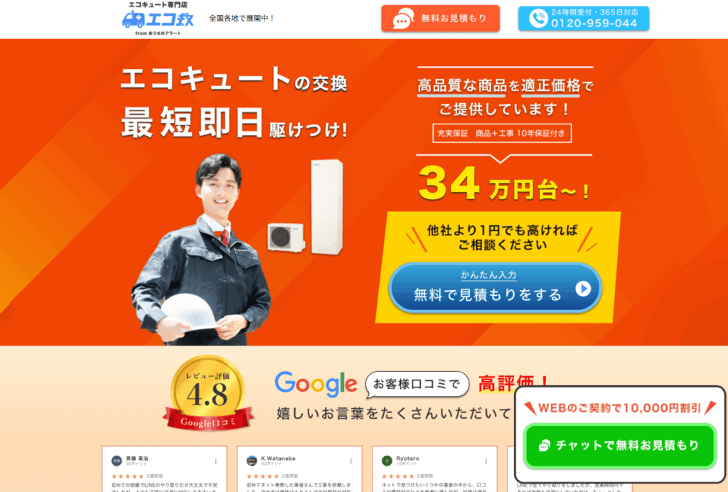 エコ救 from おうちのアラートは、住宅リフォーム全般を行う株式会社uloieが運営するエコキュート交換専門業者です。