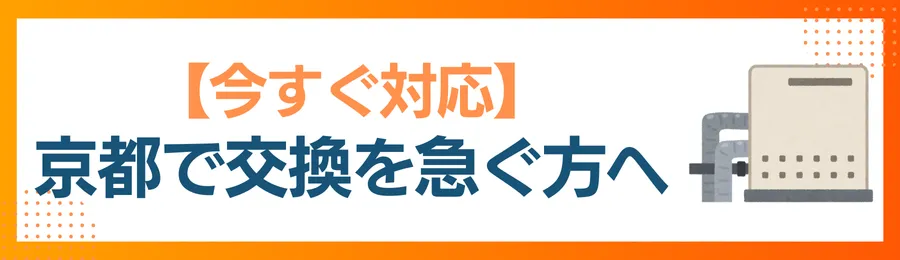 今すぐ給湯器交換をしたい場合は、京都で即日・緊急対応が可能で、本体+工事費の総額を事前に提示してくれる業者を選ぶことが重要です。