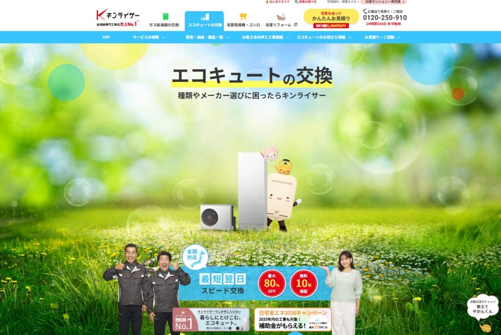 キンライサーは、売上NO.1(住宅リフォーム売上ランキング2025による自社調査)の給湯器専門工事店です。