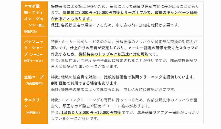 問い合わせへのレスポンスや、マンション・戸建て・特定の場所(キッチン、お風呂など)での清掃実績が豊富か。 - 価格